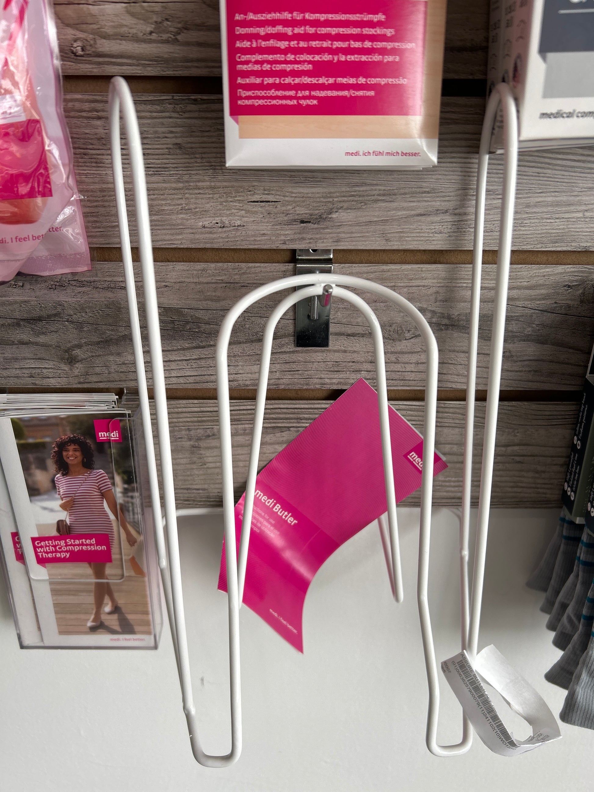 medi assure butler is a donning aid, that also helps protect the knitted fabric of the stocking. The handles on each side ensure a firm hold when donning. This way, the user keeps his balance when he pulls the stocking evenly over the leg. Patients, who are restricted in their mobility, also profit.