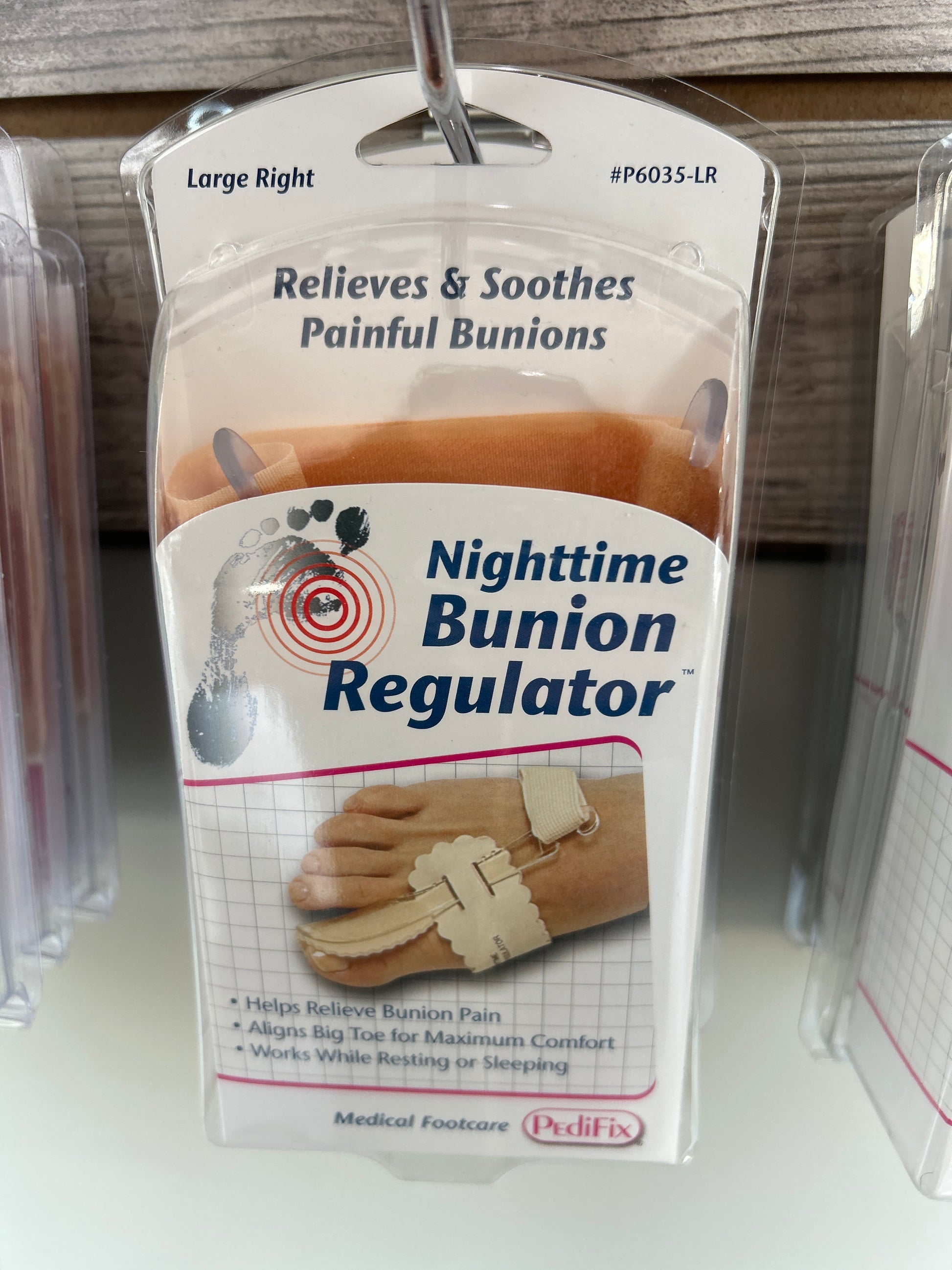 PediFix Nighttime Bunion Regulator guides the big toe towards its proper position while gently stretching tendons and muscles to help slow progression of the bunion deformity. Recommended by foot specialists to patients who want to avoid or postpone bunion surgery. Intended for use while sleeping or at rest, DO NOT walk while wearing the PediFix Nighttime Bunion Regulator.