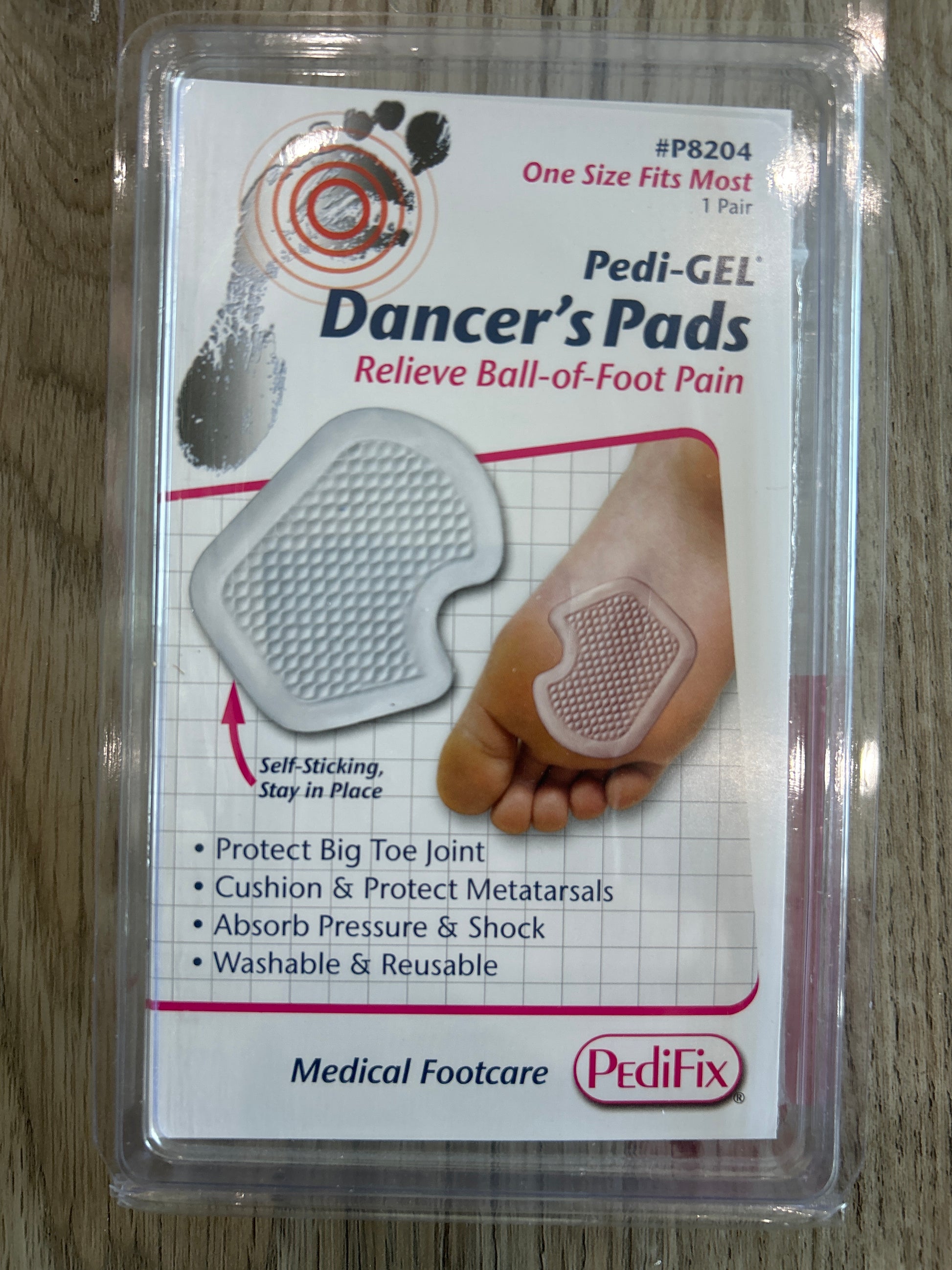 Sesamoids' are two tiny bones on the bottom of each foot at the base of the big toe. When irritated, these can become sensitive and painful. PediFix Pedi-GEL Dancer's Pads are specially shaped to cushion and protect this area. Self-sticking pads adhere directly to foot or the insides of shoes.