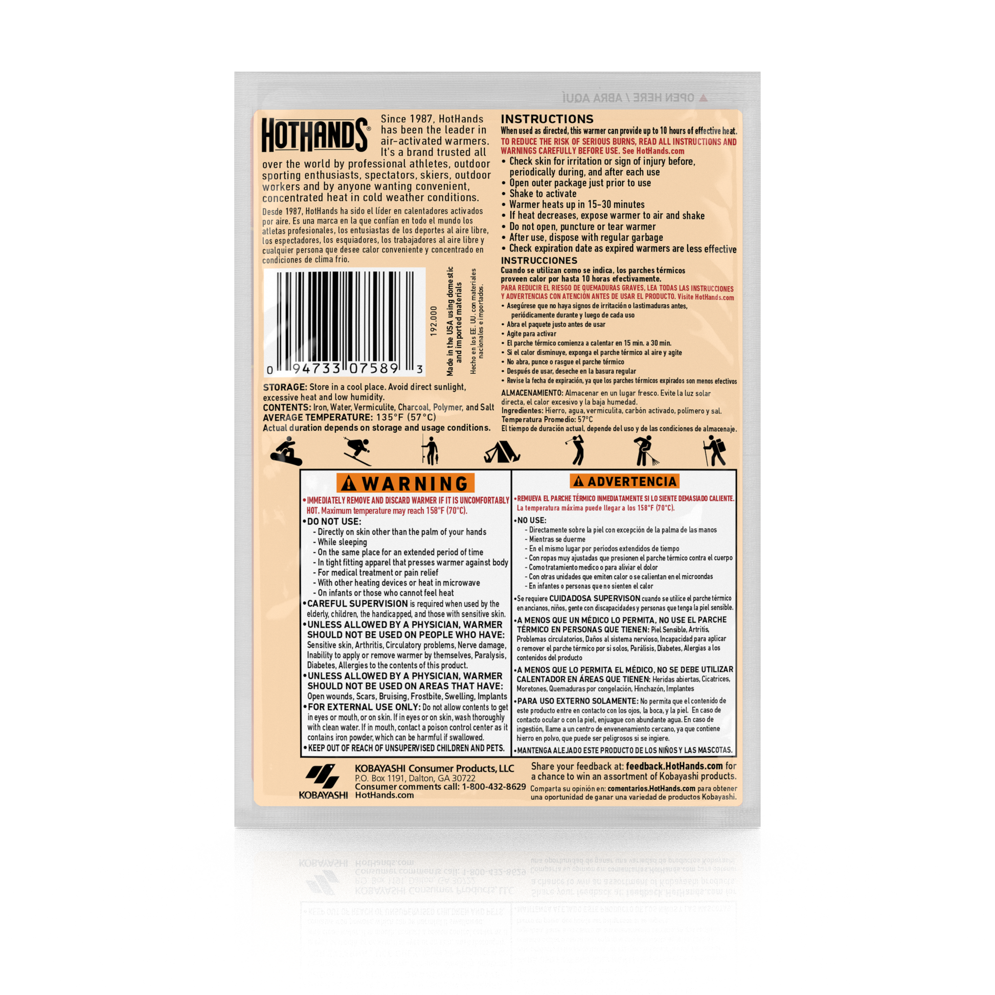 HotHands® Bigfoot toe warmers are our biggest toe warmer yet! Great for men’s shoe sizes 10 and above, this ultra-thin, air-activated warmer provides up to 7 hours of continuous warmth.