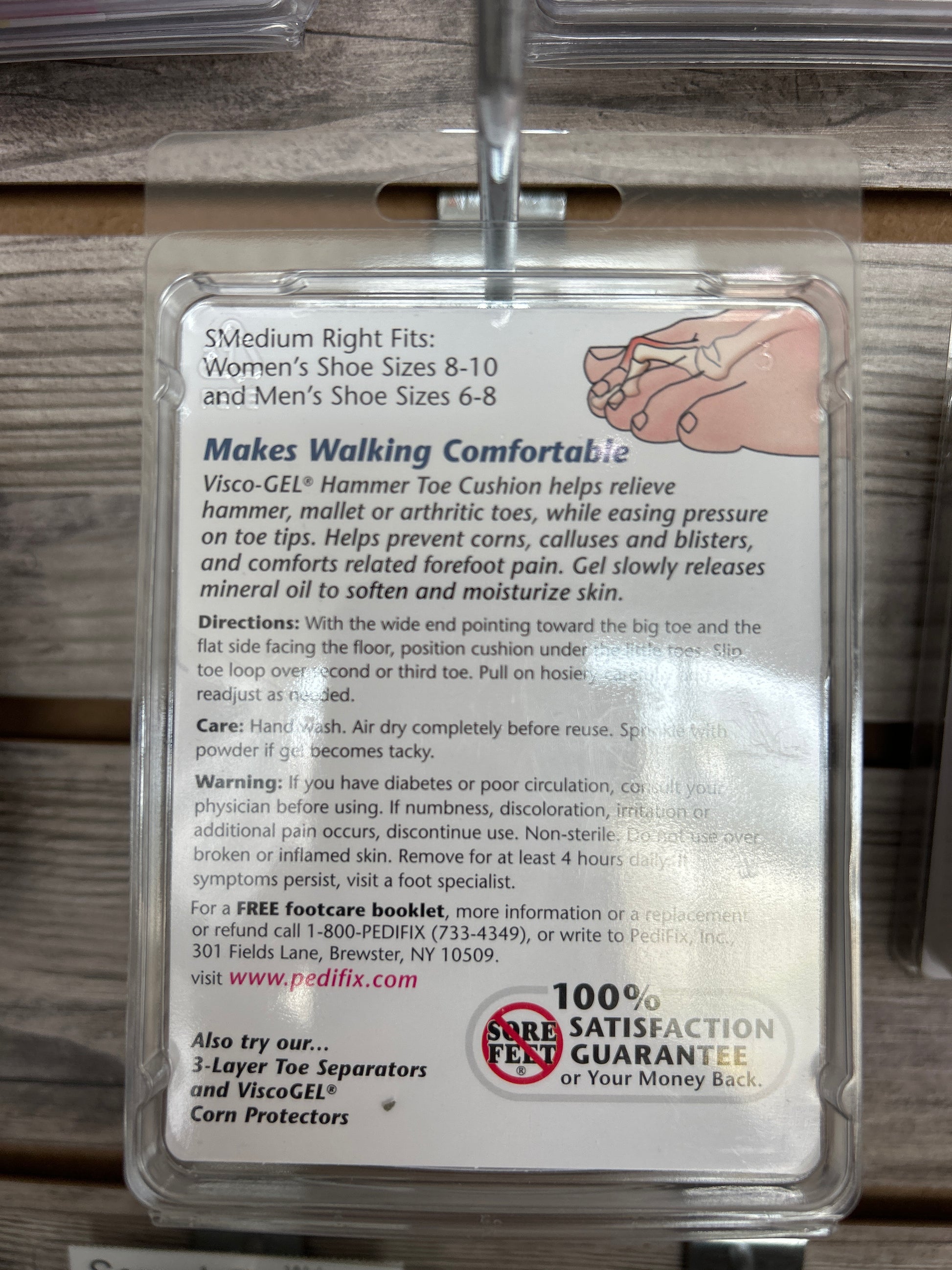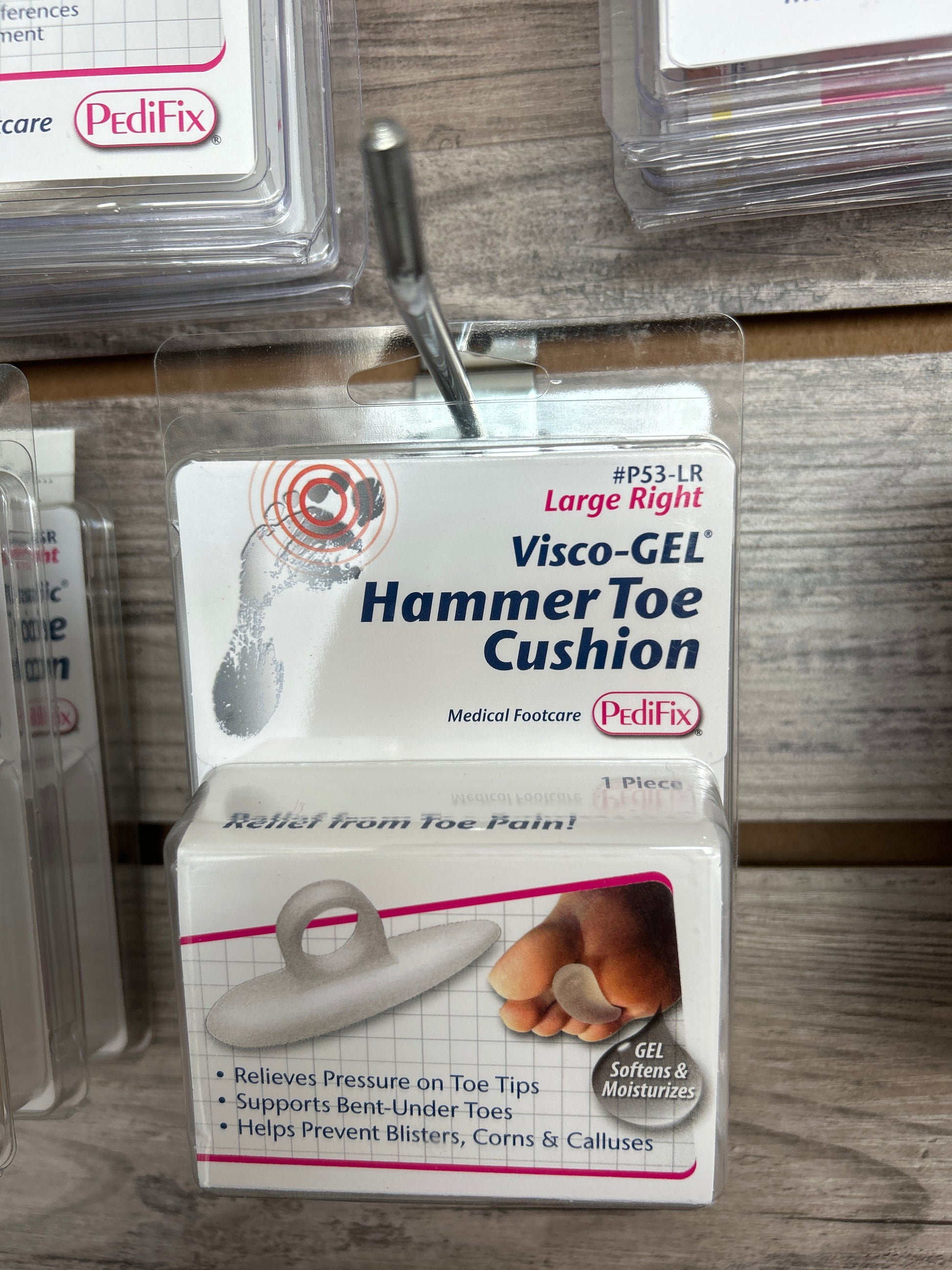 PediFix Visco-GEL Hammer Toe Cushions provide effective relief by alleviating pressure on toe tips, reducing the risk of corns, calluses, and blisters. Additionally, they offer soothing comfort for ball-of-foot pain commonly associated with hammer, claw, or arthritic toe conditions. The innovative gel ring design securely holds the cushion in place without the need for adhesives, ensuring hassle-free wear. Available separately for the right or left foot, or as a universal one size fits most version, these cushions offer versatility and convenience for all foot shapes and sizes.